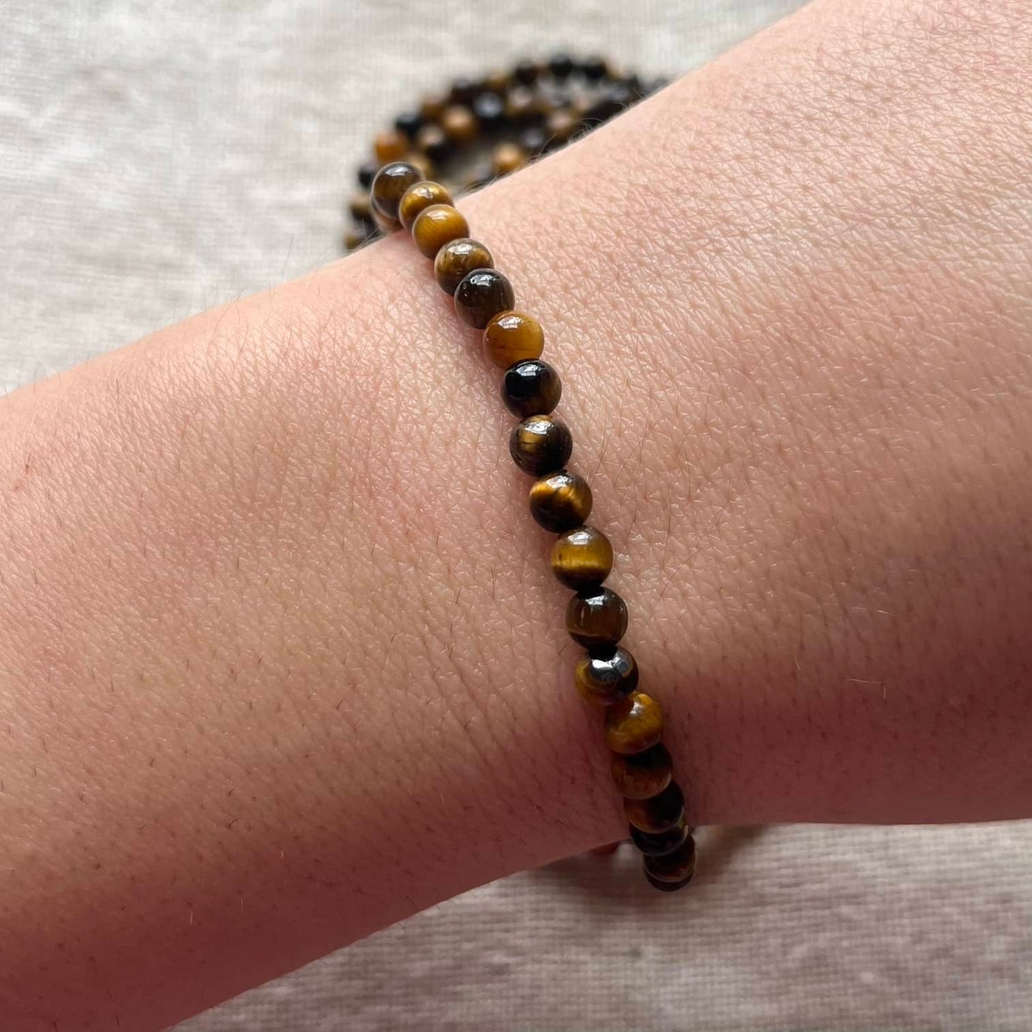 MADE WITH: Handcrafted by us with love and intention, this bracelet features high-quality, natural 4mm Tiger Eye beads strung on a durable silicon elastic.