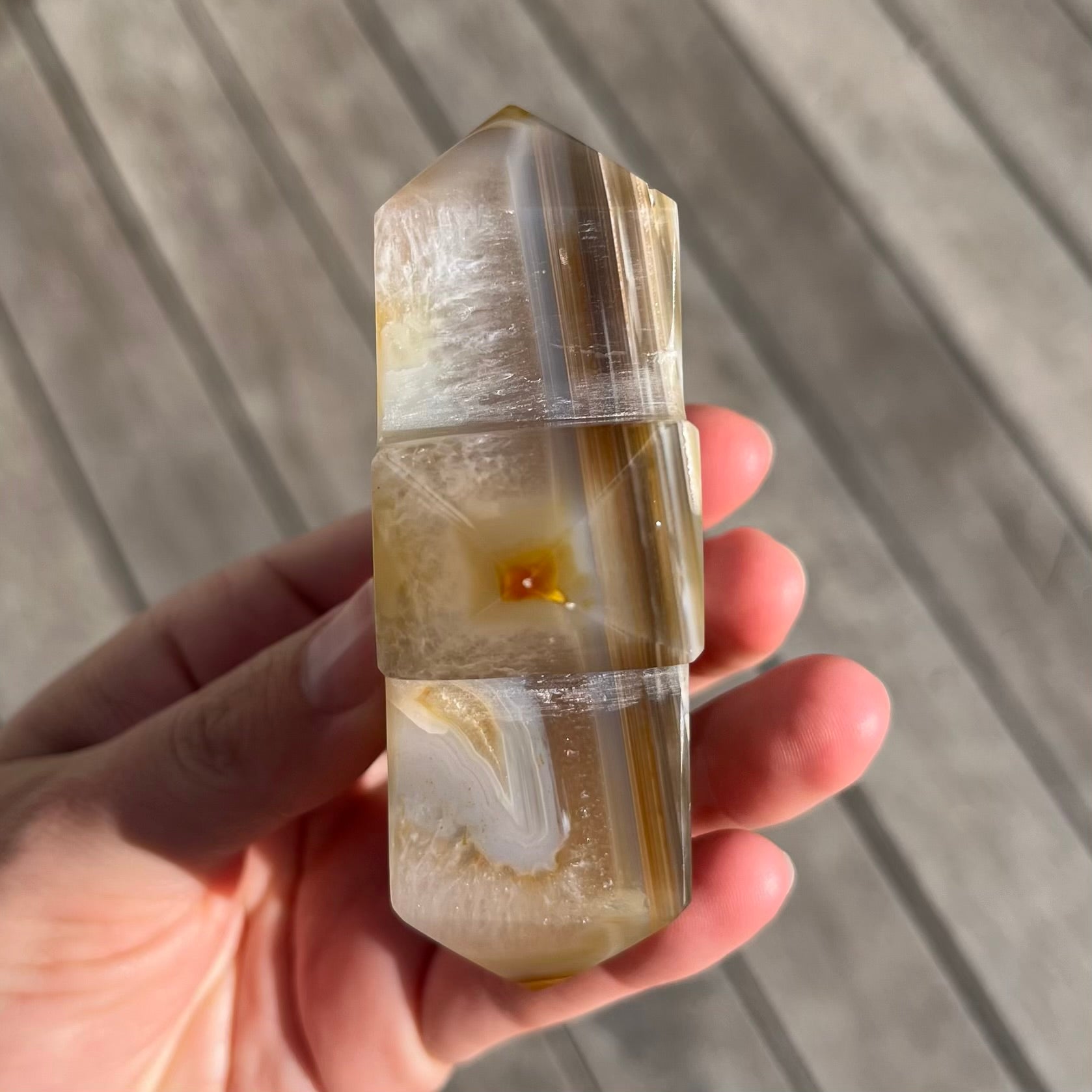 PROPERTIES: Grey Agate is a grounding and harmonising stone. It promotes emotional stability, inner strength, and mental clarity while gently protecting against negativity and encouraging a sense of peace.