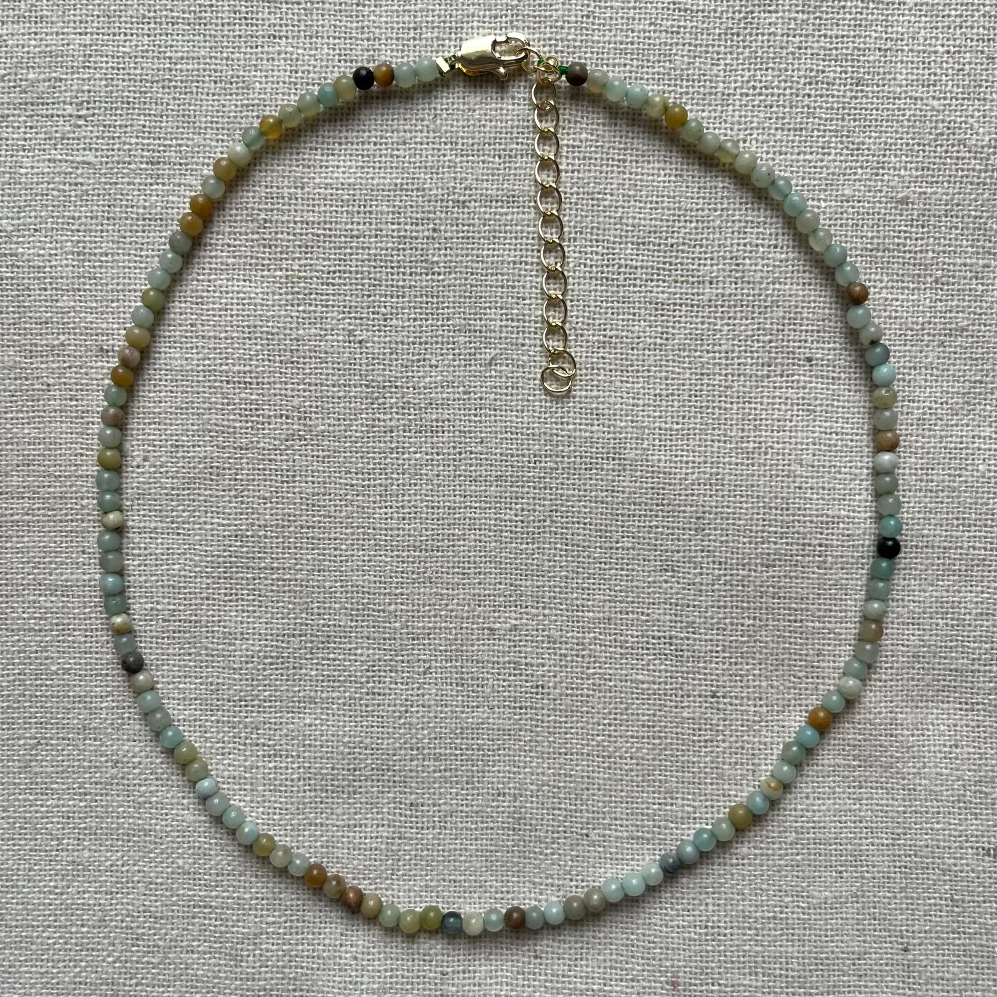 MADE WITH: Handcrafted by us with love and intention, this necklace features high-quality, natural 3mm Amazonite beads finished with a 14k gold filled clasp.