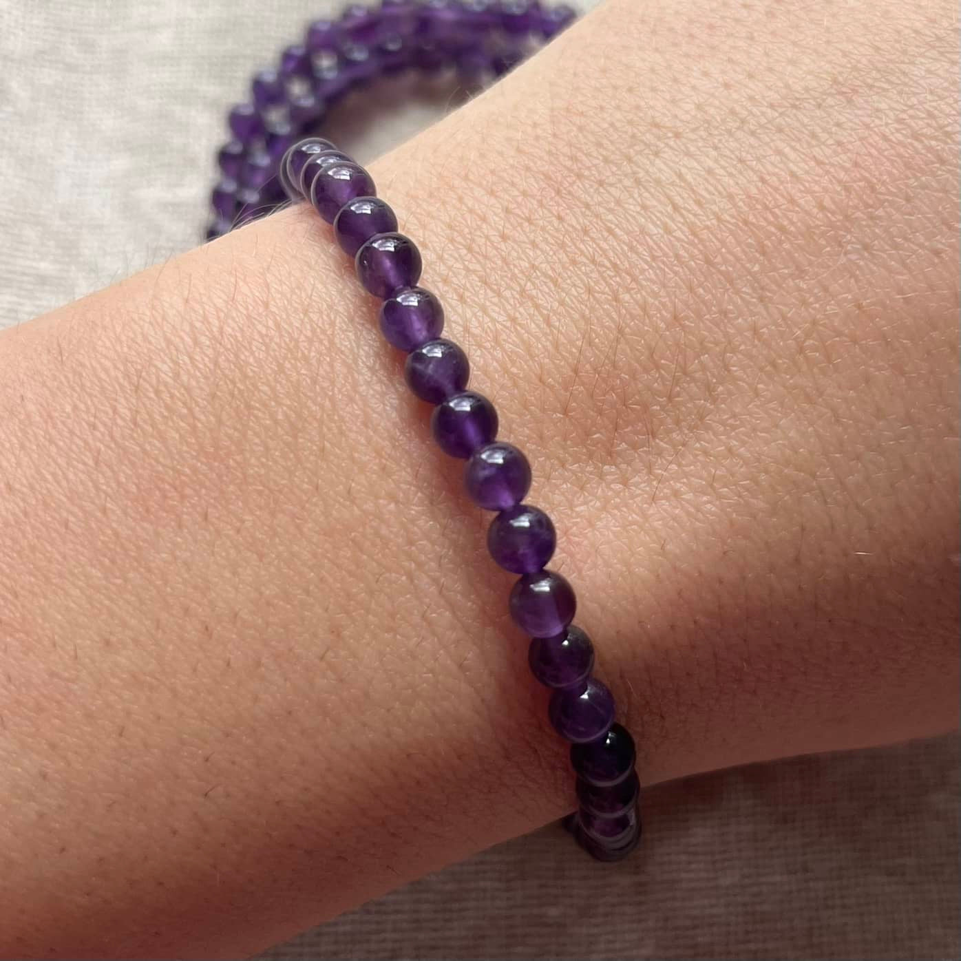 Amethyst 4mm Beaded Bracelet - Spiritual Protection