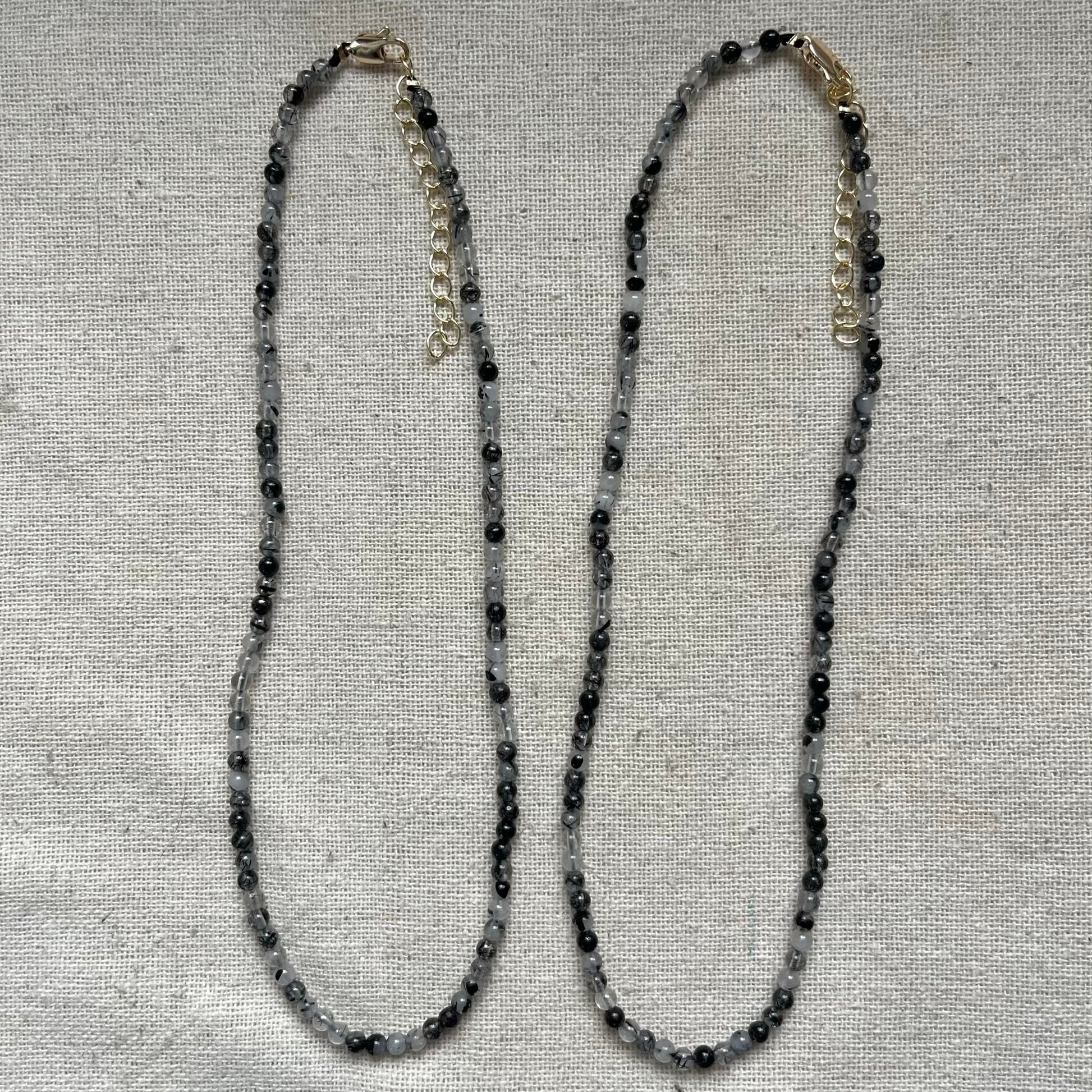 Black Rutilated Quartz 3mm Beaded Necklace - Protection
