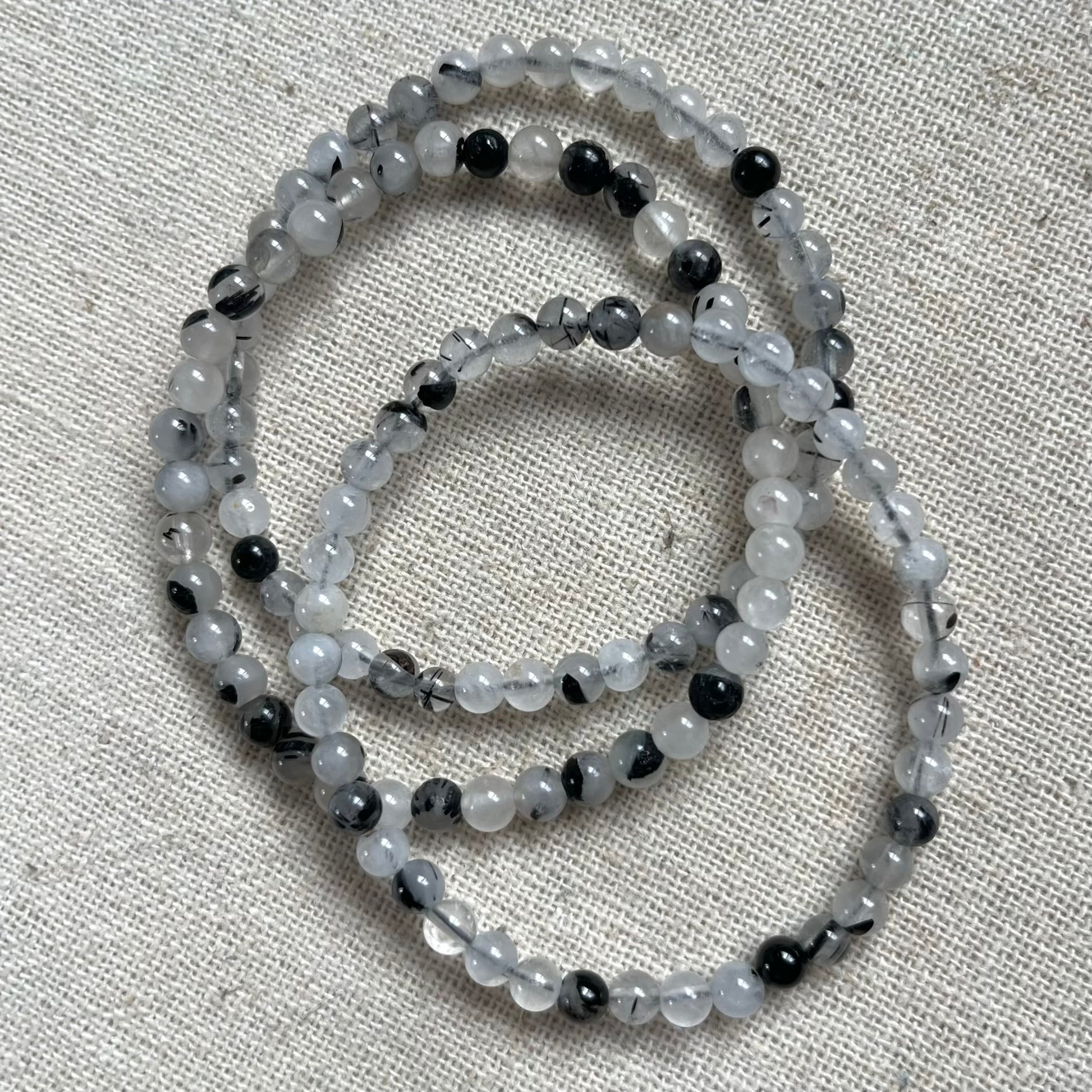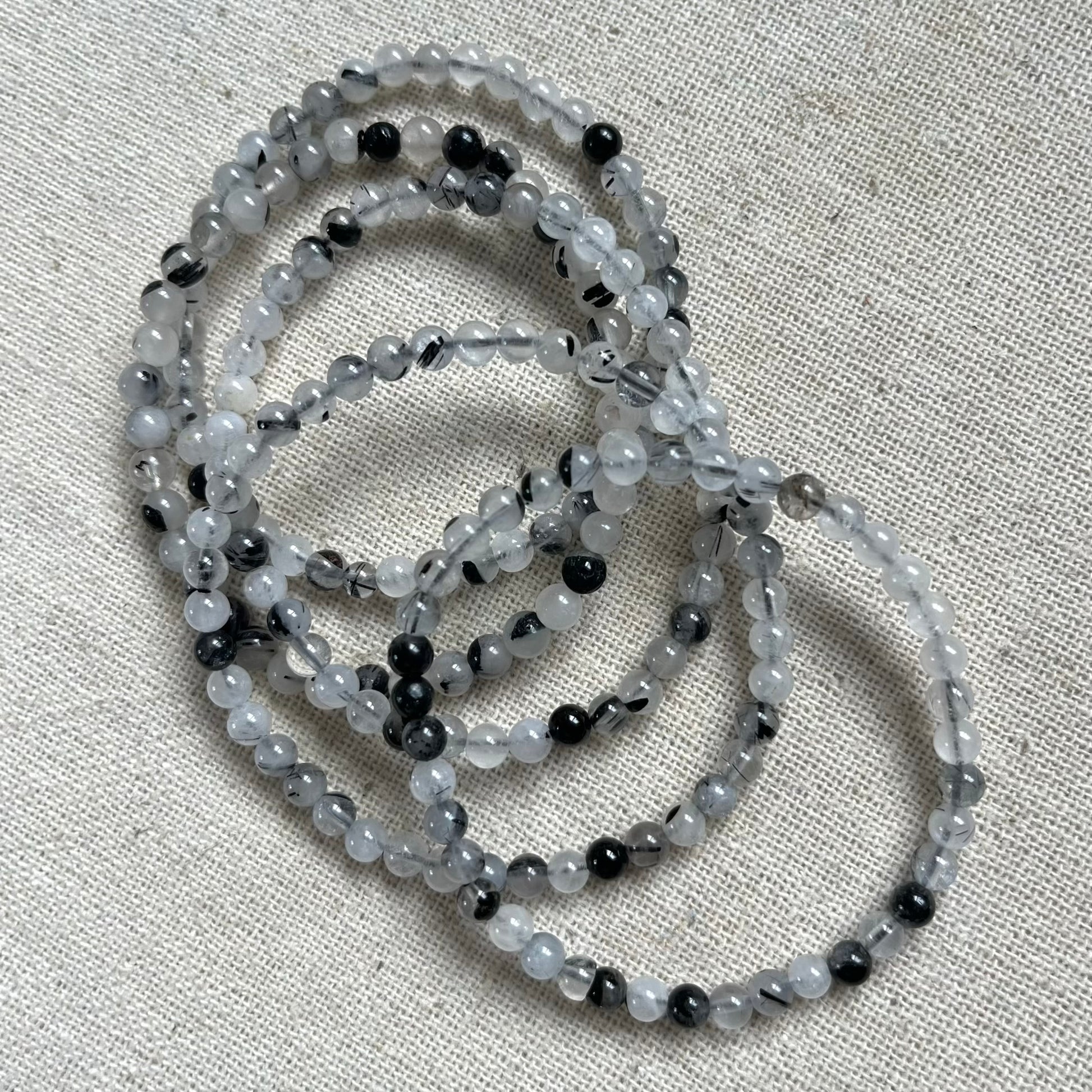 Black Rutilated Quartz 4mm Beaded Bracelet - Protection