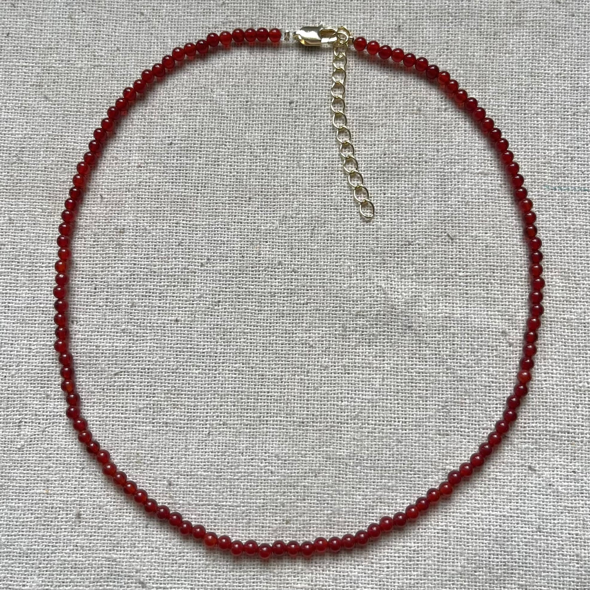 MADE WITH: Handcrafted by us with love and intention, this necklace features high-quality, natural 3mm Carnelian beads finished with a 14k gold filled clasp.