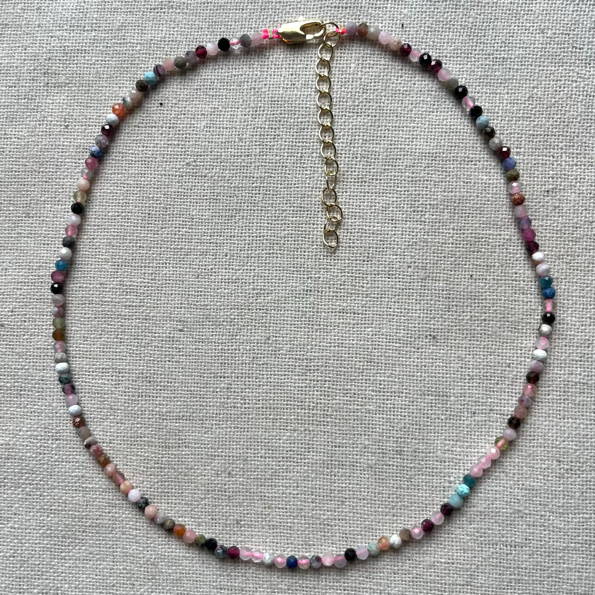 MADE WITH: Handcrafted by us with love and intention, this necklace features high-quality, natural 3mm faceted mixed crystal beads finished with a 14k gold filled clasp.