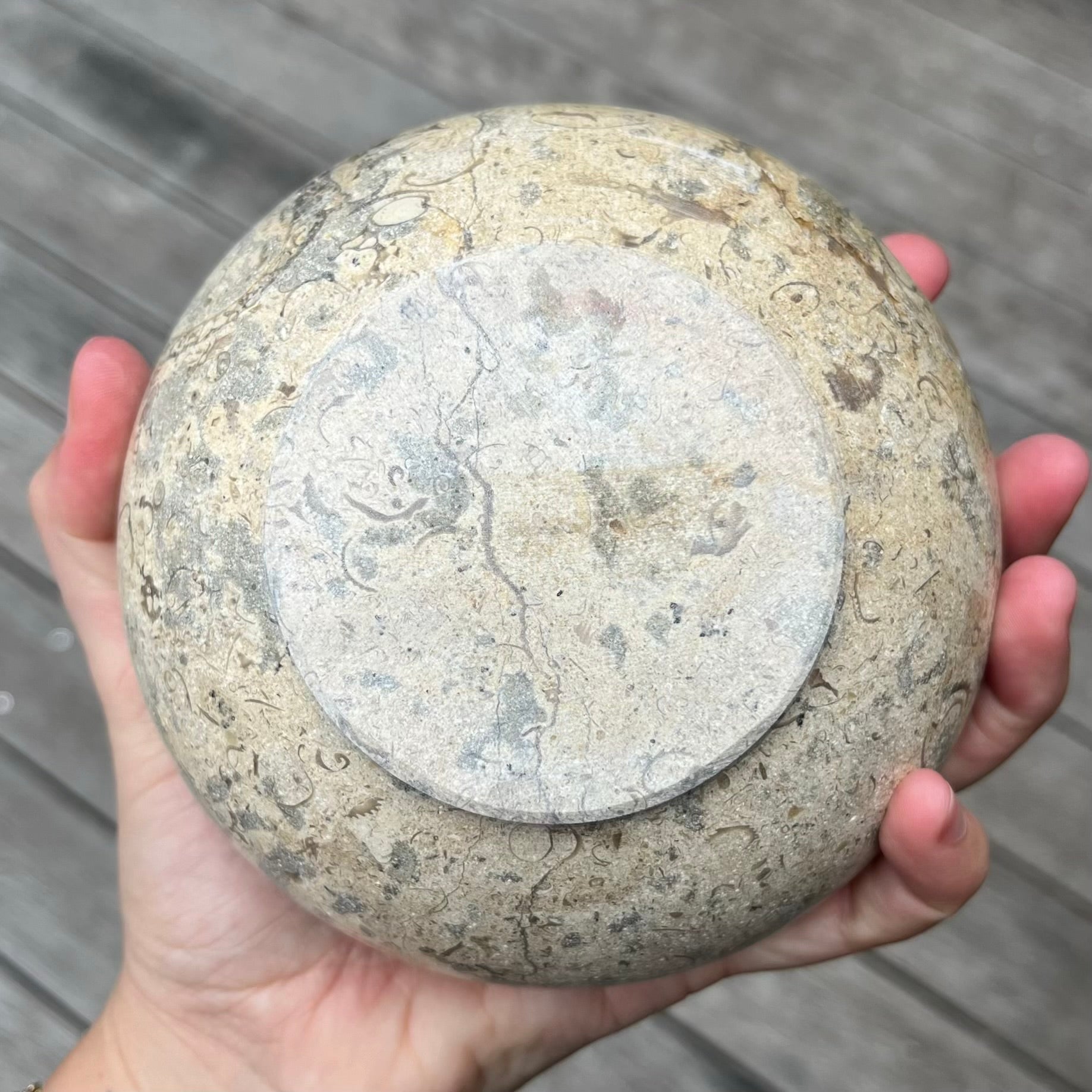 WHAT IS IT: A beautifully carved Fossil Stone bowl made from natural stone containing visible ancient fossil patterns. Polished to a smooth finish, this unique bowl is perfect for holding small crystals, jewellery, or special keepsakes while adding an earthy, one-of-a-kind accent to your space.