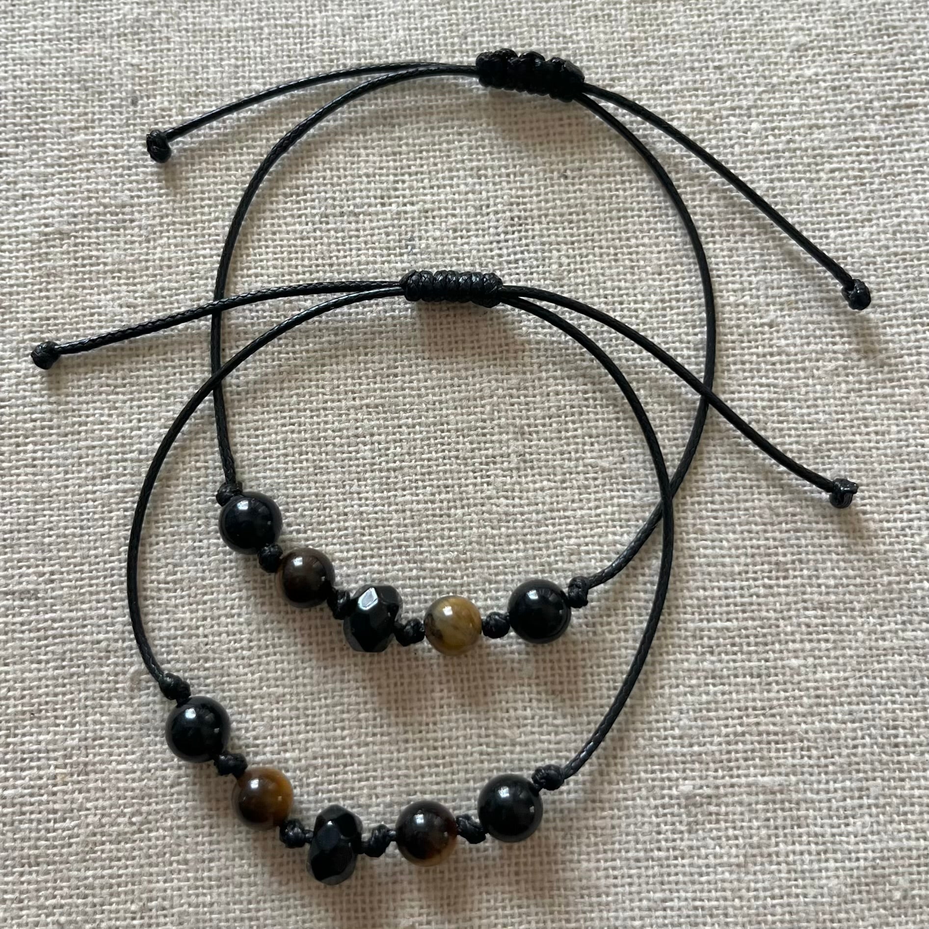 Grounding Cord Bracelet - Obsidian & Tiger Eye