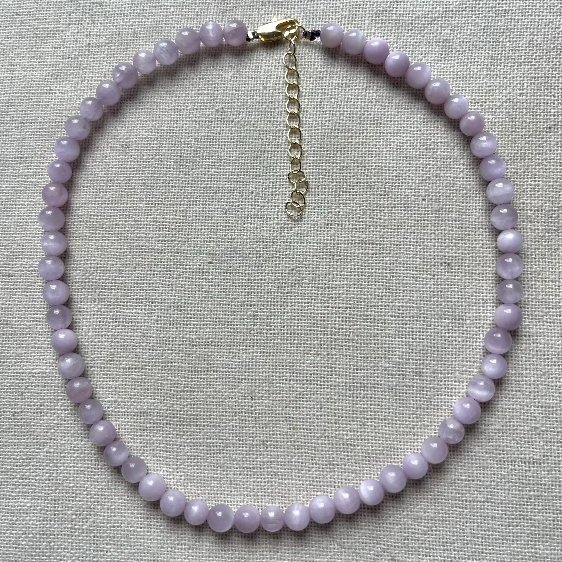 MADE WITH: Handcrafted by us with love and intention, this necklace features high-quality, natural 6mm Kunzite beads finished with a 14k gold filled clasp.