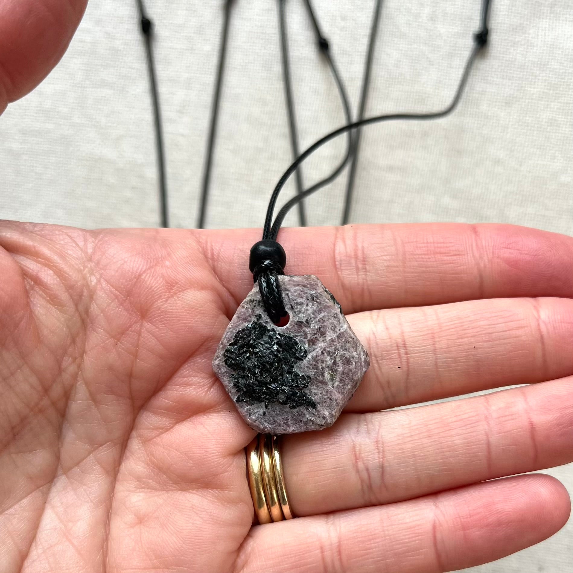MADE WITH: A raw Ruby pendant approx 3cm in size with a 6mm wooden bead on an adjustable 33inch black cord necklace. This pendant makes a bold everyday piece or a meaningful gift for anyone drawn to crystals of passion, vitality, and strength.