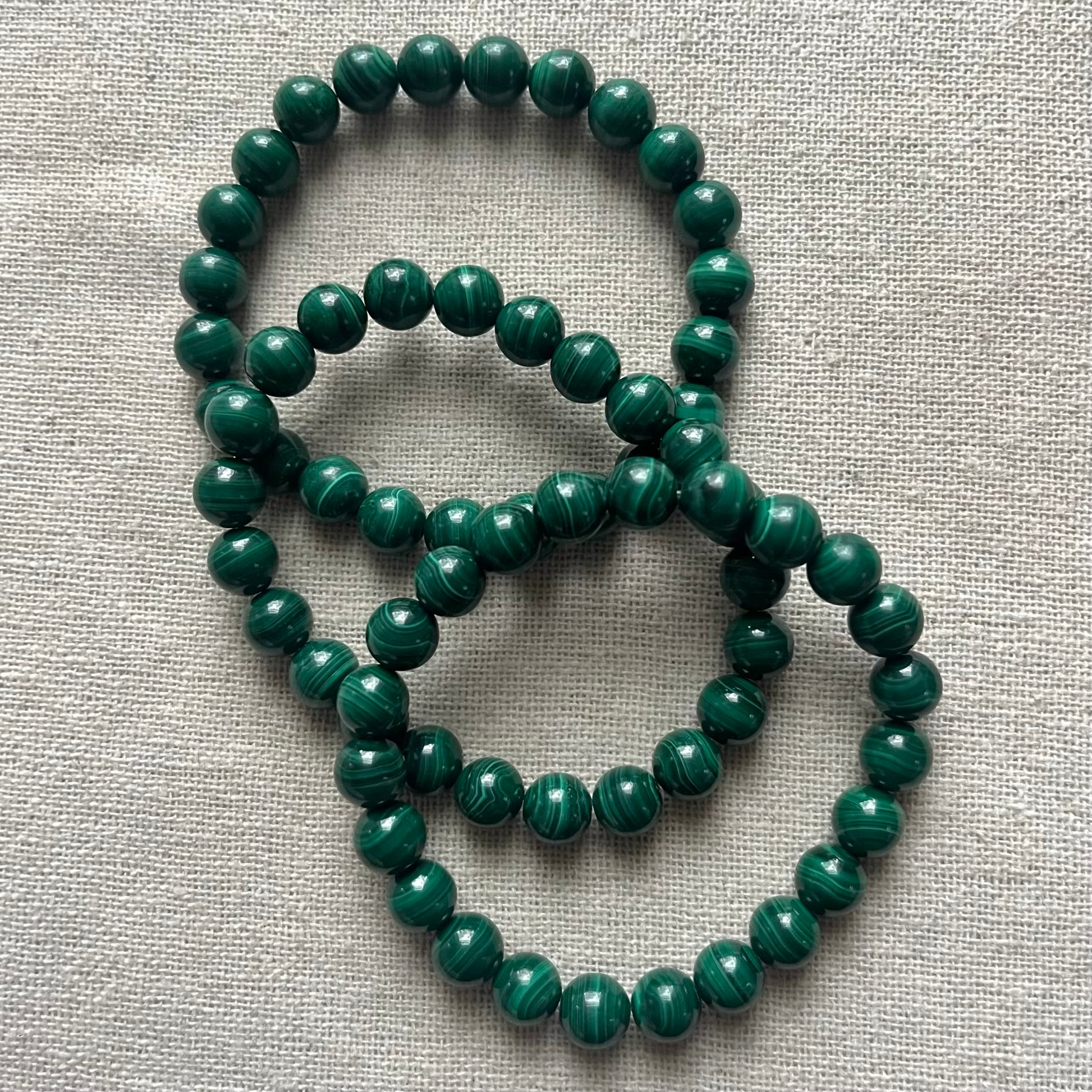 MADE WITH: Handcrafted by us with love and intention, this bracelet features high-quality, natural 8mm Malachite beads strung on a durable silicon elastic.