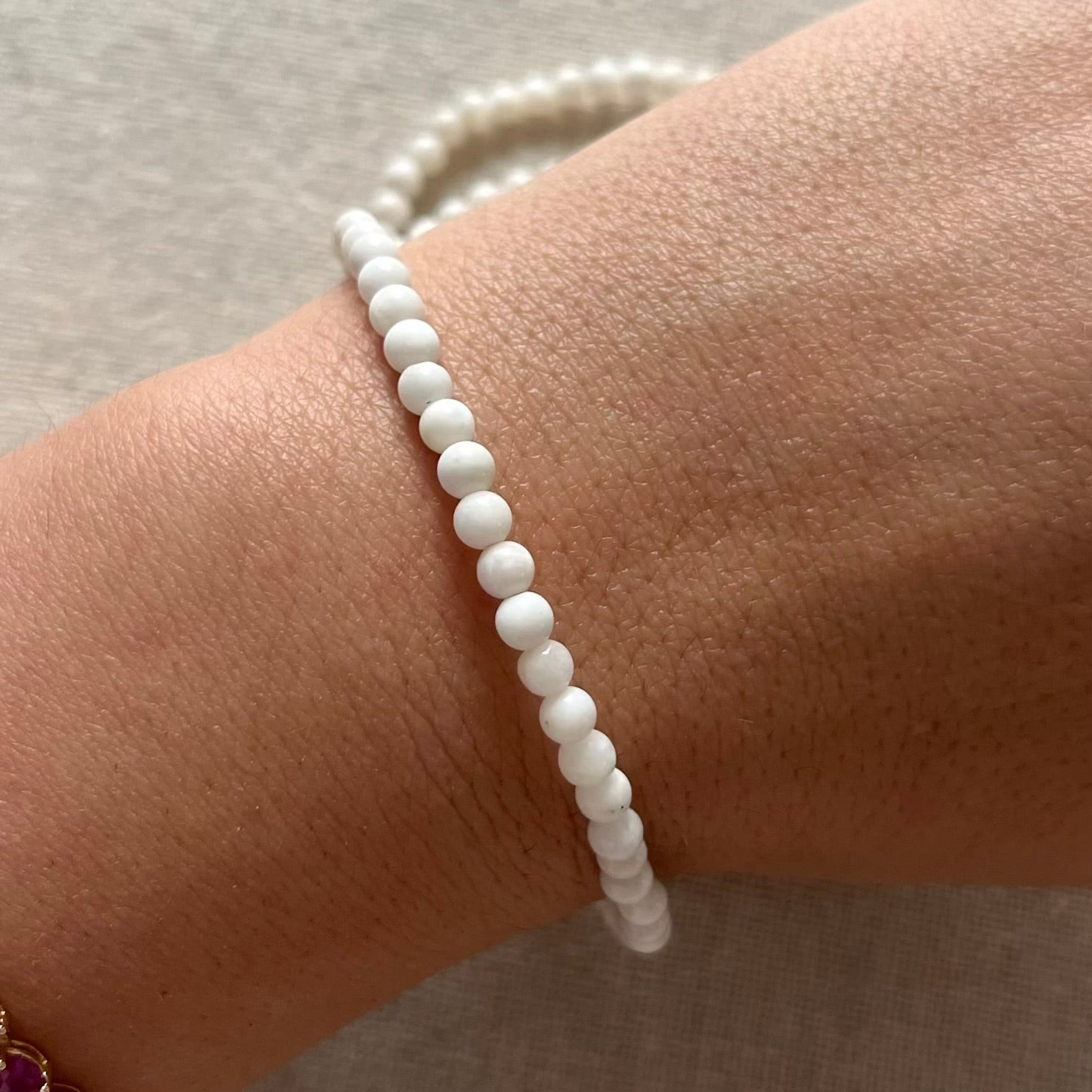 MADE WITH: Handcrafted by us with love and intention, this bracelet features high-quality, natural 4mm Moonstone beads strung on a durable silicon elastic.