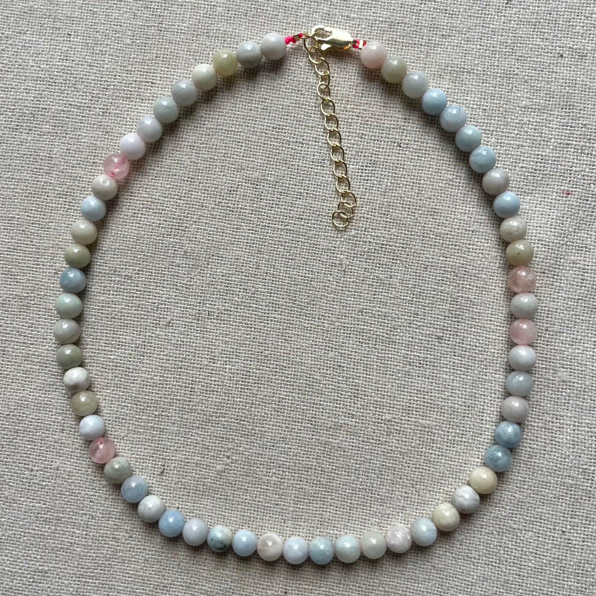 MADE WITH: Handcrafted by us with love and intention, this necklace features high-quality, natural 6mm Morganite beads finished with a 14k gold filled clasp.