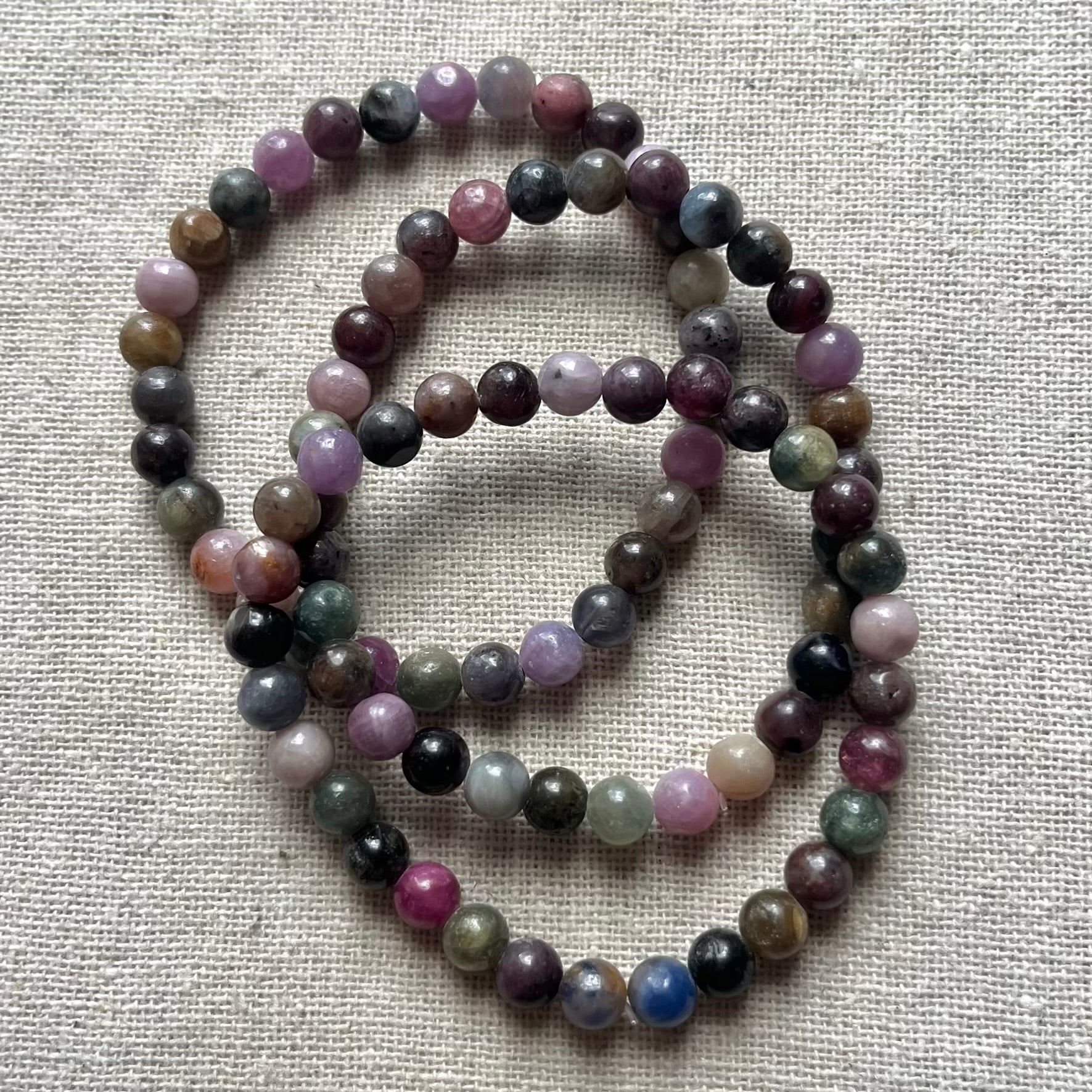 MADE WITH: Handcrafted by us with love and intention, this bracelet features high-quality, 6mm mixed sapphire and ruby beads strung on a durable silicon elastic.