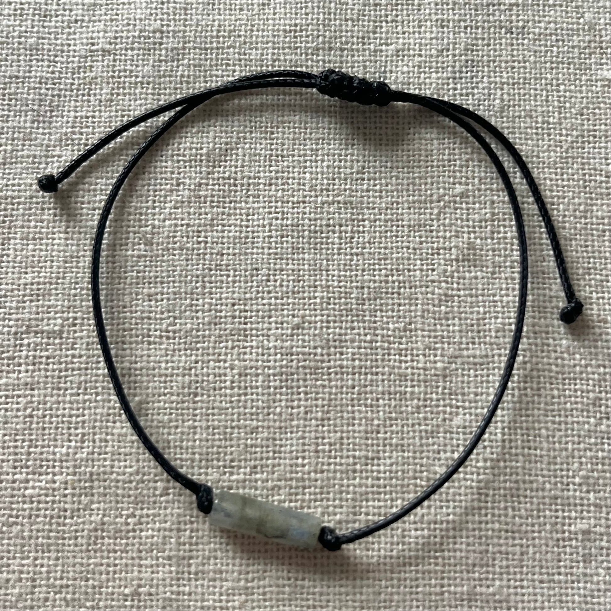 MADE WITH: Handcrafted by us with love and intention, this bracelet features a high-quality, natural 12mm Labradorite centrepiece on a cream adjustable cord bracelet.