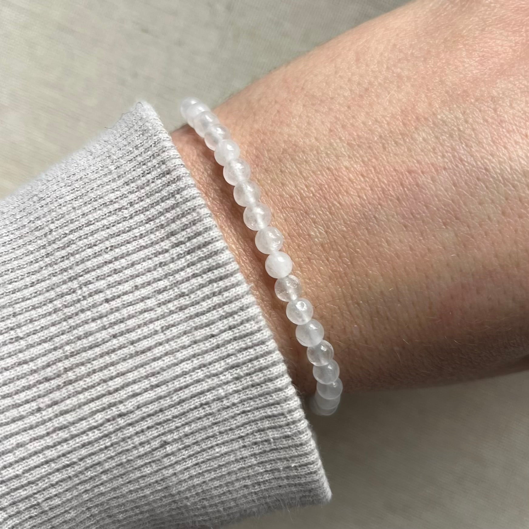 MADE WITH: Handcrafted by us with love and intention, this bracelet features high-quality, natural 4mm White Jade beads strung on a durable silicon elastic.